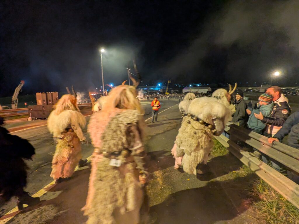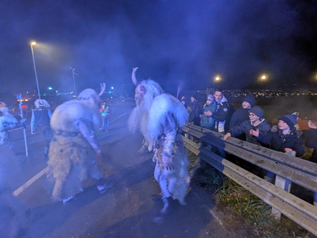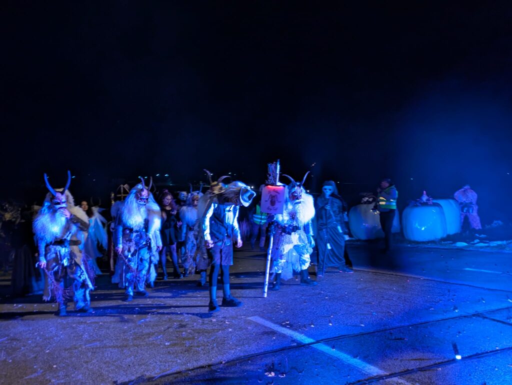 Insgesamt nahmen wir mit 11 Mitgliedern teil, darunter ein Waldmandl, ein Tod, zwei Krampusinnen, ein Nikolaus und zwei Engel. Für uns war es der erste Moment, an dem wir unsere neuen Vereinsjacken, Masken und Felle im echten Laufbetrieb präsentieren konnten. Alles war frisch, sauber vorbereitet und bereit für den ersten großen Einsatz.